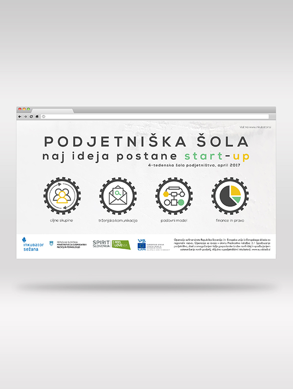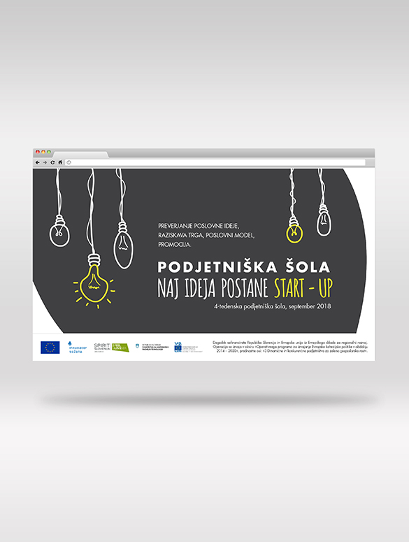 Oblikovanje spletne pasice dogodka Podjetniška šola 2017 in 2018 za oglaševanje prek Facebooka in spletne strani.